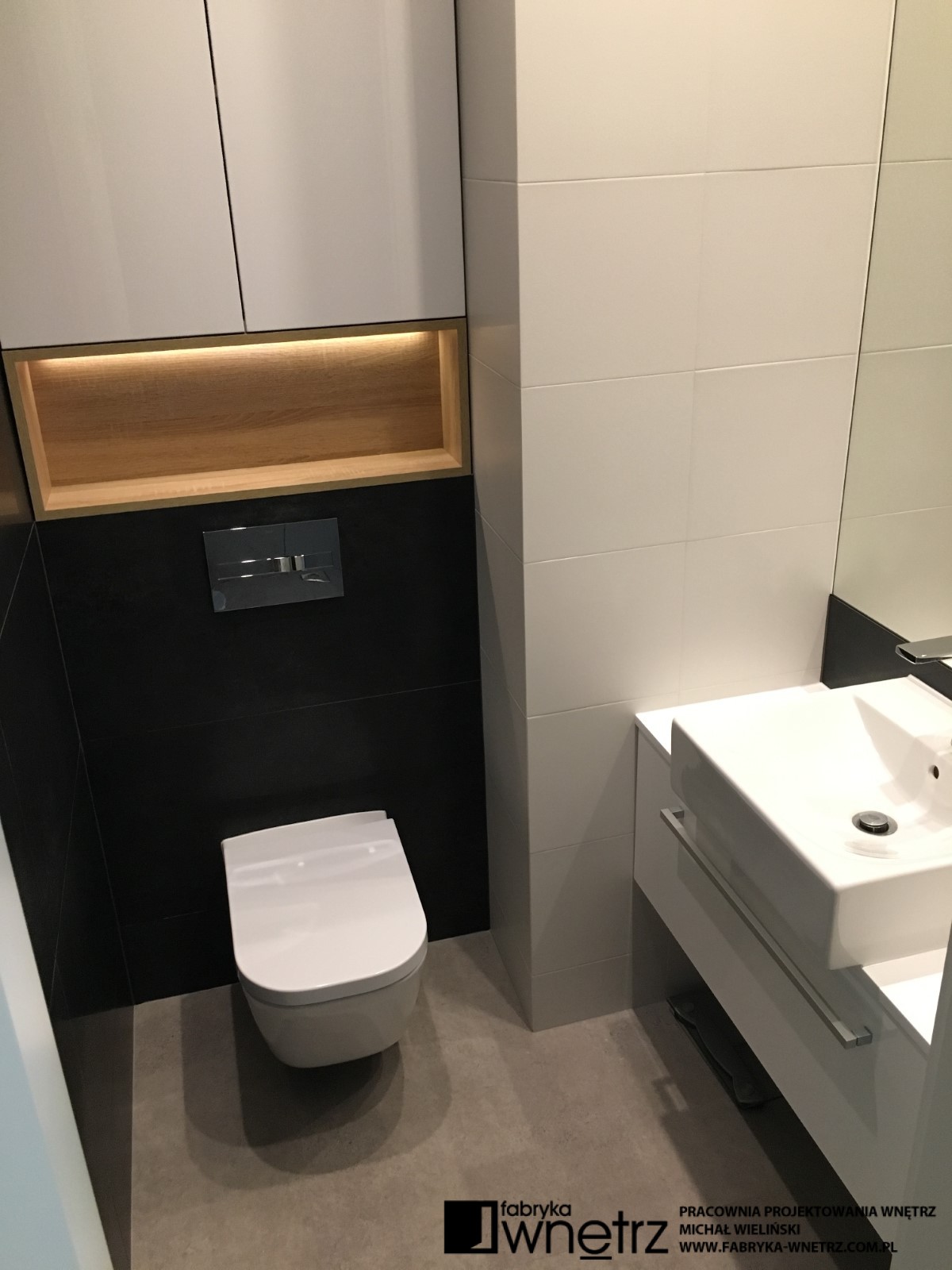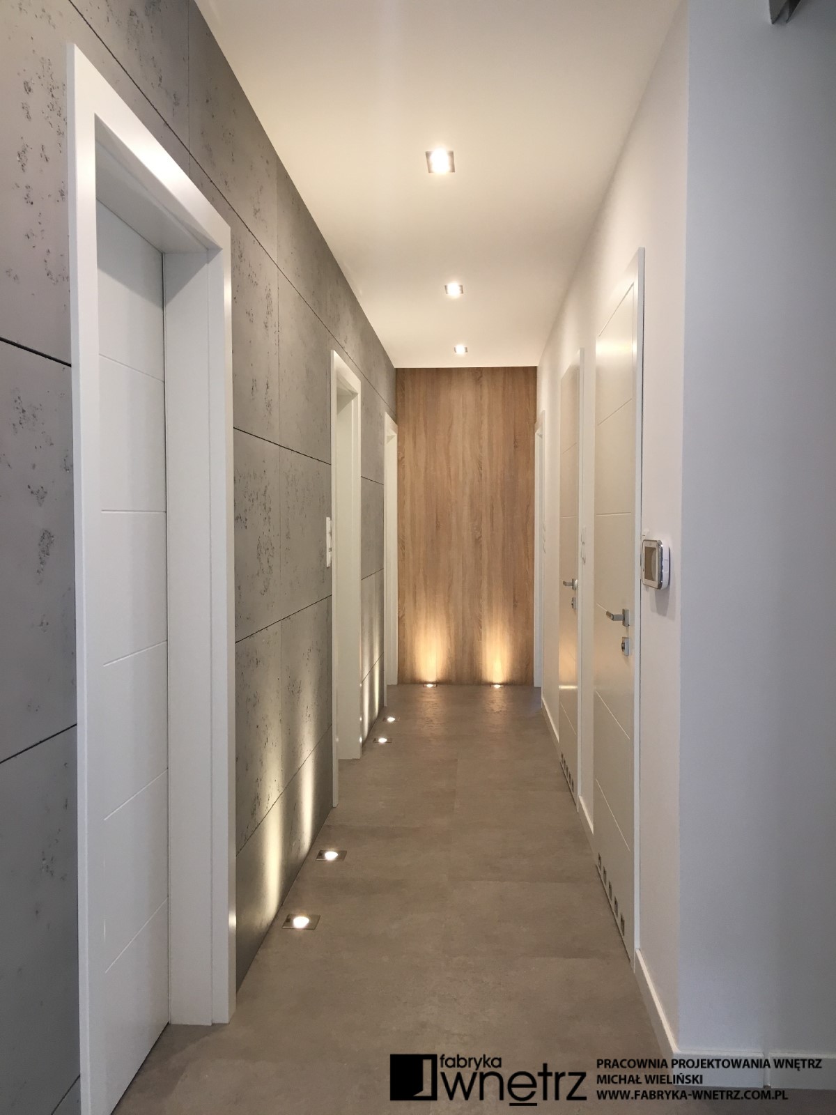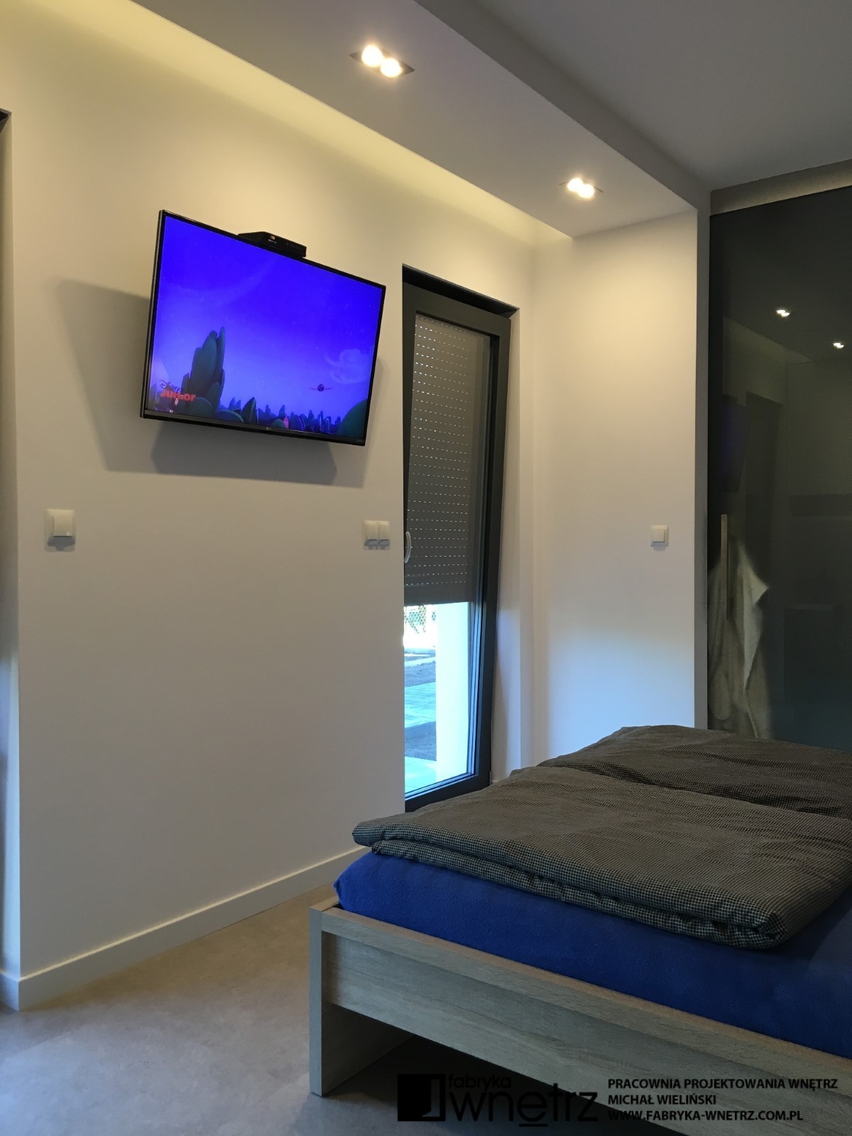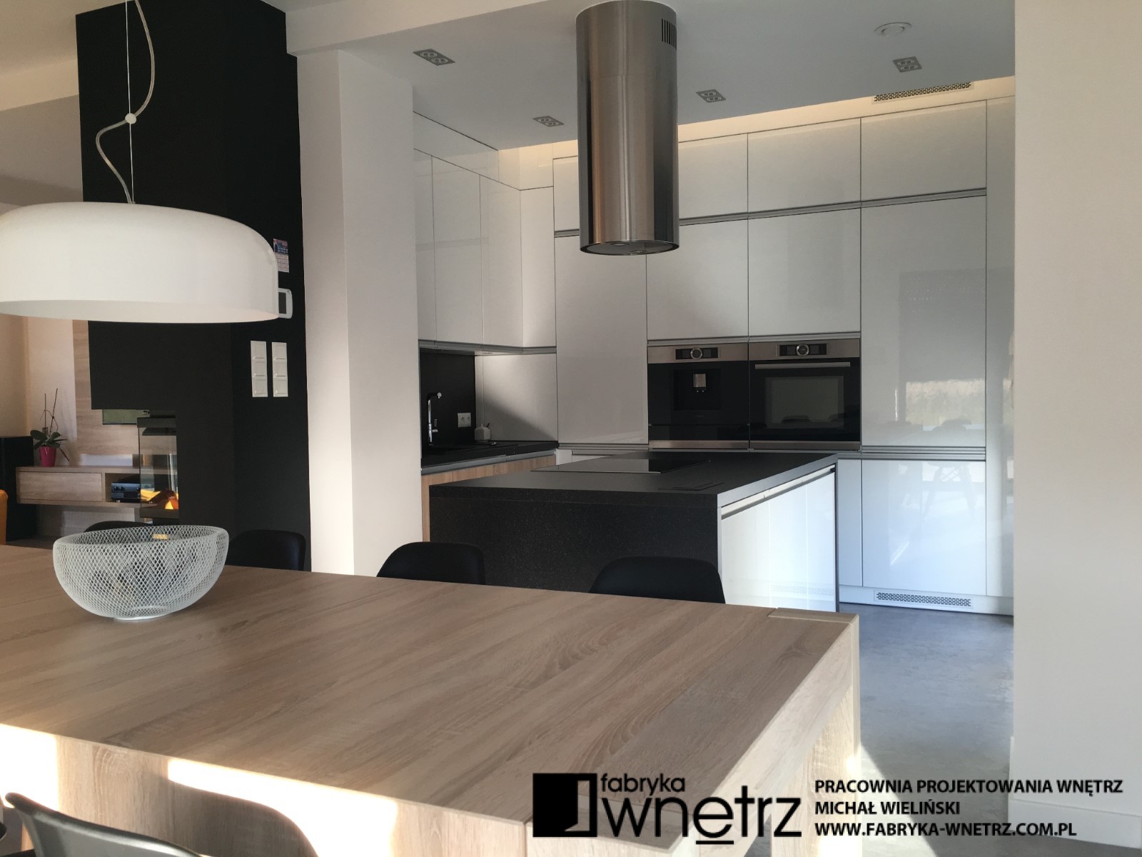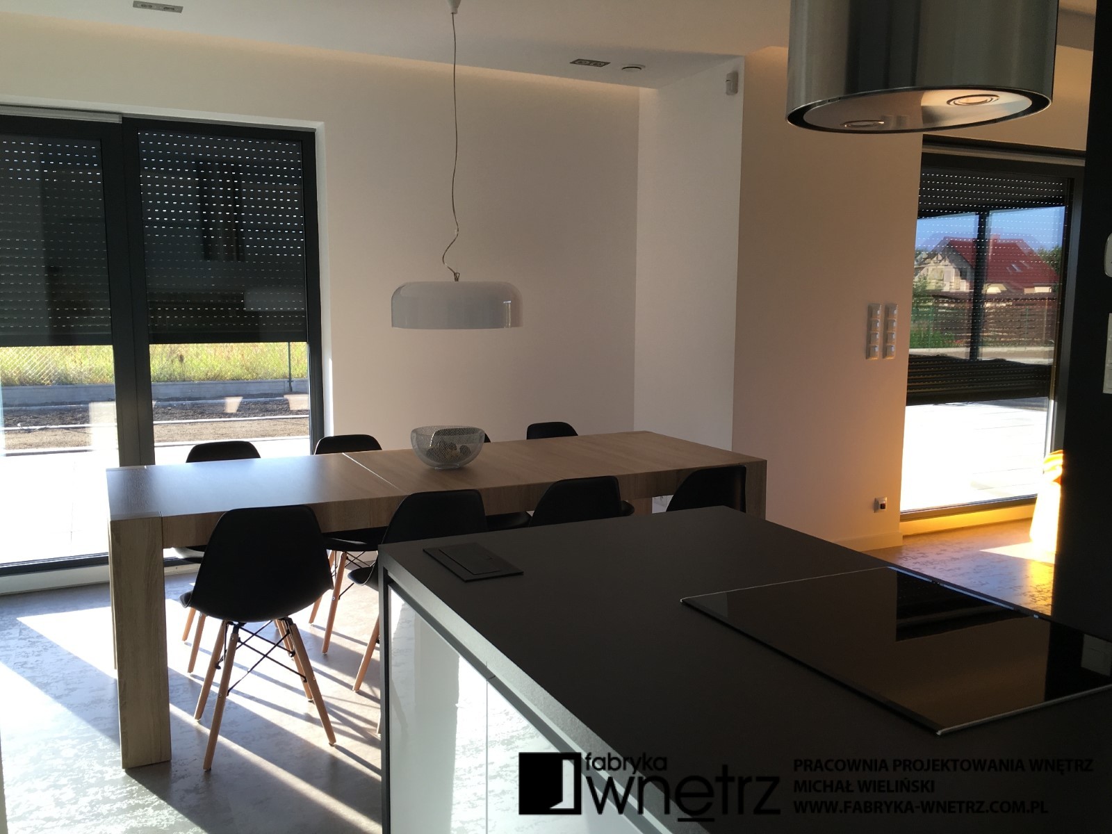 Dom w Koninie w minimalistycznym stylu. Stonowana gama kolorów w postaci bieli, czerni i szarości przełamana kroplą żółtych i niebieskich dodatków. Winyle na posadzce, betony w holu, lappatowane płytki w łazience i odrobina jasnego drewna, to idealny przepis na nowoczesne wnętrze w minimalistycznym stylu, którego wykończenie nie musi kosztować majątku.