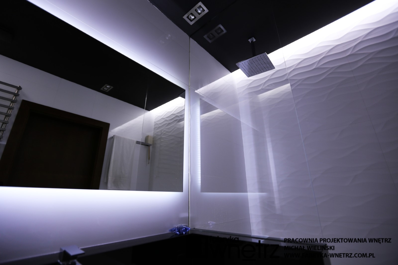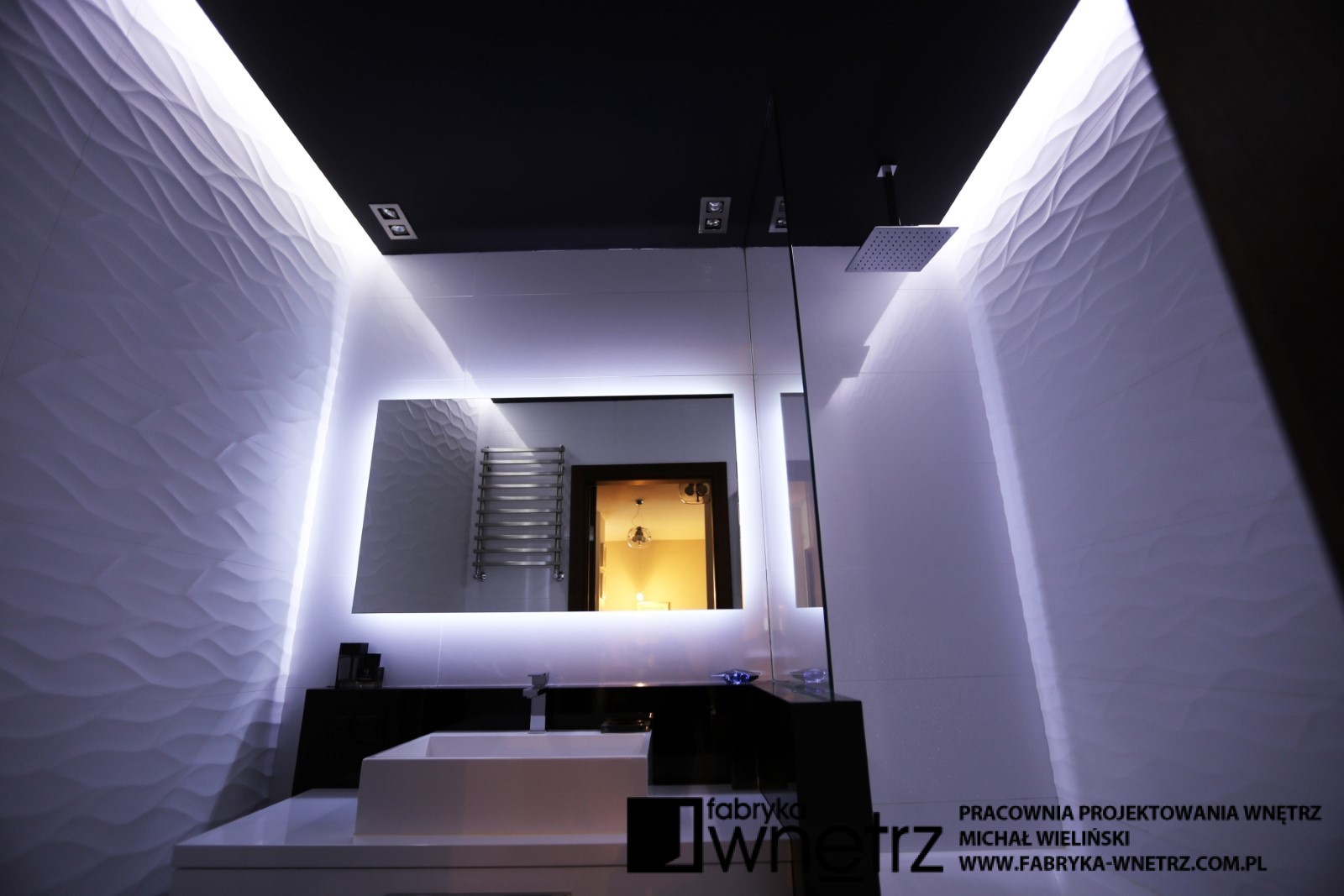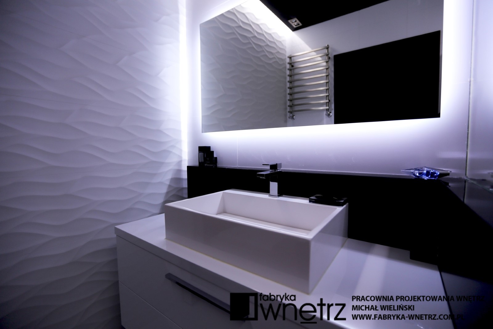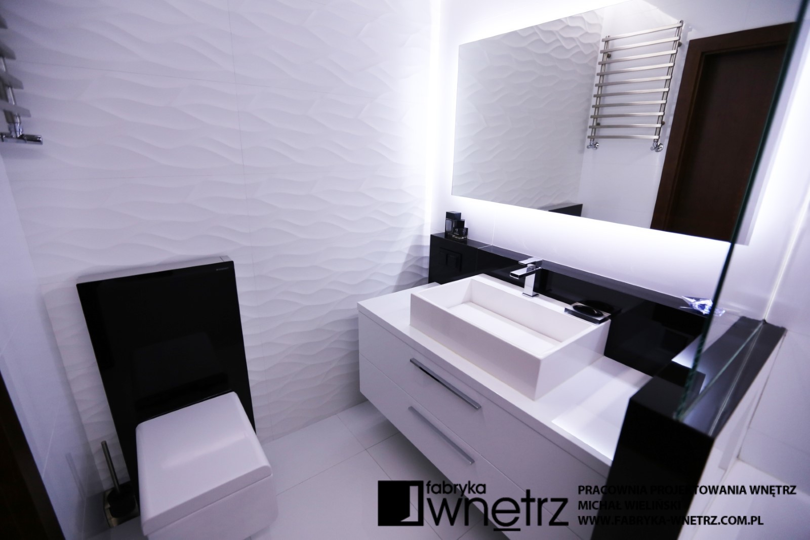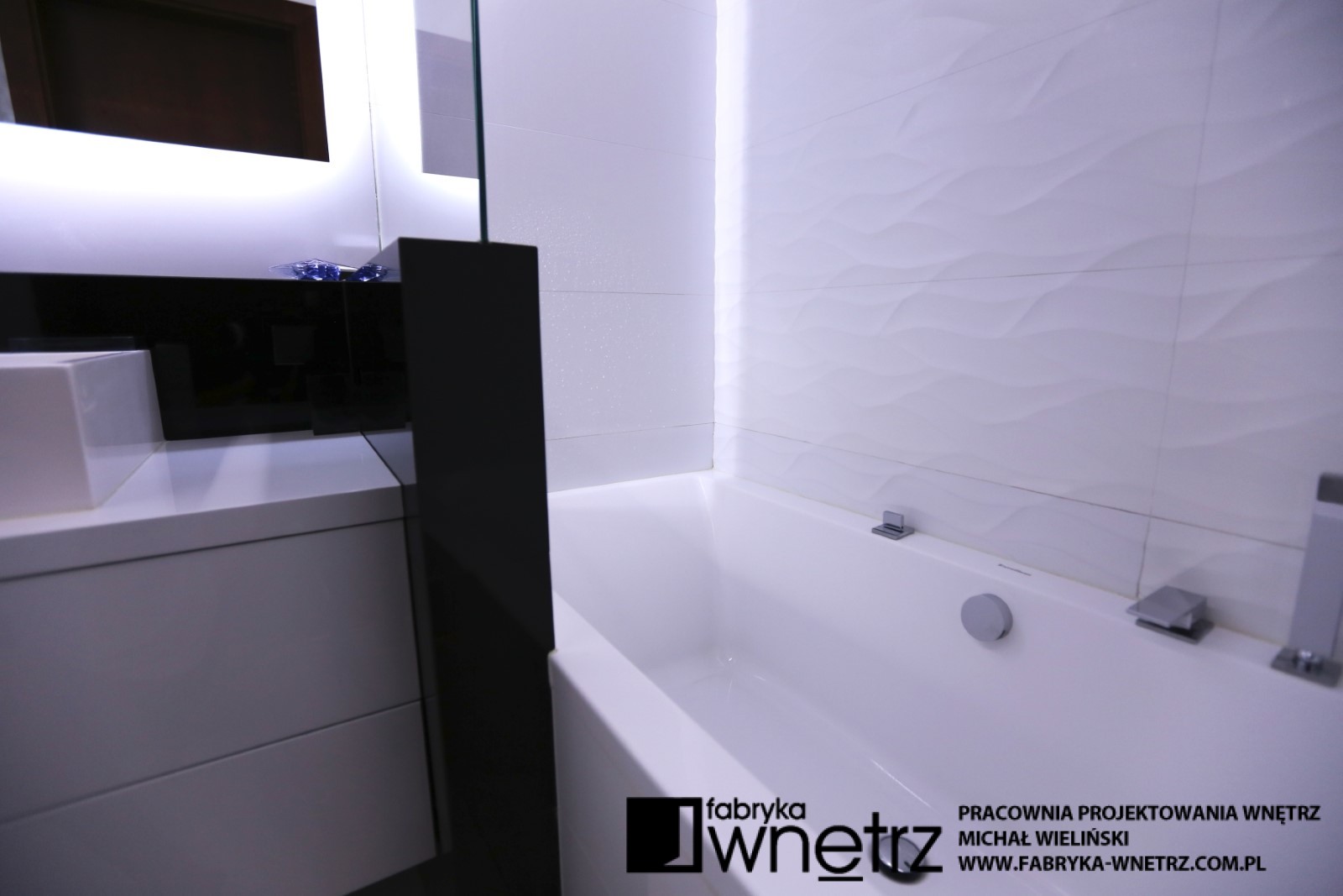 Projekt łazienki w Warszawie. Nieśmiertelna i elegancka biel i czerń w zestawieniu z nowoczesną armaturą sanitarną.